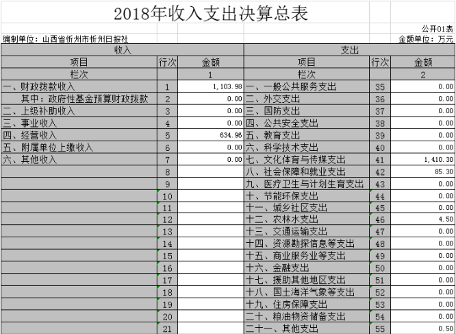 三、忻州日?qǐng)?bào)社2018年部門(mén)決算收支情況說(shuō)明