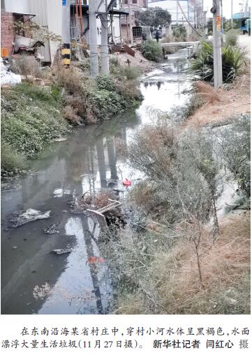 ——農(nóng)村污水治理“梗阻”現(xiàn)象調(diào)查 新華社記者 在我國(guó)廣大農(nóng)村,生活污水處置一直是人居環(huán)境整治的突出短板。記者近日跟隨國(guó)務(wù)院農(nóng)村人居環(huán)境檢查組在全國(guó)多地現(xiàn)場(chǎng)檢查發(fā)現(xiàn),一些村鎮(zhèn)黑臭水體問(wèn)題突出,部分村鎮(zhèn)小作坊、畜禽養(yǎng)殖污水違規(guī)排放時(shí)有發(fā)生,污水治理未與農(nóng)村改廁同步銜接致大量污水直排等問(wèn)題,亟待解決。 多地農(nóng)村污水直排,污染環(huán)境觸目驚心 在東南沿海某省村莊中的一座小橋上,一幅寫(xiě)著“小康不小康,關(guān)鍵看老鄉(xiāng)”的巨型宣傳牌十分醒目。然而,在被廣告牌擋住的地方,水面漂浮大量的塑料袋、易拉罐、泡面盒等生活垃圾,水體呈黑褐色。