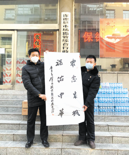 近期新冠肺炎疫情牽動(dòng)著全國(guó)人民的心。遠(yuǎn)在他鄉(xiāng)的保德籍中國(guó)著名書法家韓雄平先生也時(shí)刻牽掛著家鄉(xiāng)一線抗疫工作人員。他特意委托他的弟弟韓旭平于2月9日將“眾志成城,福佑中華”書法作品及慰問品送給奮戰(zhàn)在抗疫一線的工作人員。 本報(bào)通訊員 攝影報(bào)道