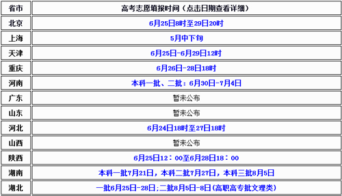 全國各省市2016年高考志愿填報(bào)時(shí)間匯總