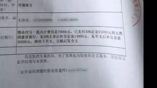 東北一所高校的一位在讀博士生定制的博士論文。全文12萬字,全款高達(dá)7萬元,買家已經(jīng)支付了2萬多元的訂金