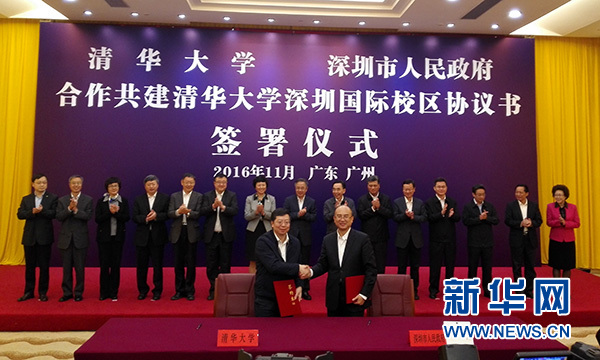 新華網(wǎng)北京11月4日電 今日,清華大學(xué)與深圳市人民政府在廣州簽署協(xié)議,在清華大學(xué)深圳研究生院、清華-伯克利深圳學(xué)院的辦學(xué)基礎(chǔ)上,進(jìn)一步深化合作、拓展升級(jí),共建清華大學(xué)深圳國(guó)際校區(qū)(Tsinghua University Shenzhen Global Campus, TUSGC,以下簡(jiǎn)稱“國(guó)際校區(qū)”)。中共中央政治局委員、廣東省委書記胡春華,廣東省委副書記、省長(zhǎng)朱小丹,廣東省委副書記、深圳市委書記馬興瑞,清華大學(xué)黨委書記陳旭等出席簽字儀式,清華大學(xué)校長(zhǎng)邱勇和深圳市長(zhǎng)許勤代表雙方簽署了合作協(xié)議。