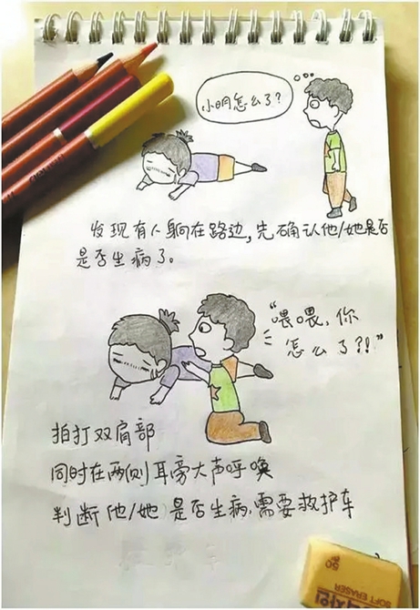 說(shuō)起畫這套漫畫的原因,何瑾說(shuō),這是從實(shí)際的工作出發(fā)得來(lái)的。有不少人不清楚怎么撥打120急救電話,有的人對(duì)撥打120的相關(guān)要求并不是很了解,想象和實(shí)際上還是有差距,通過(guò)漫畫,讓更多的人了解正確撥打120急救電話的方法和步驟。(華西城市讀本記者陳伯強(qiáng) 受訪者供圖)