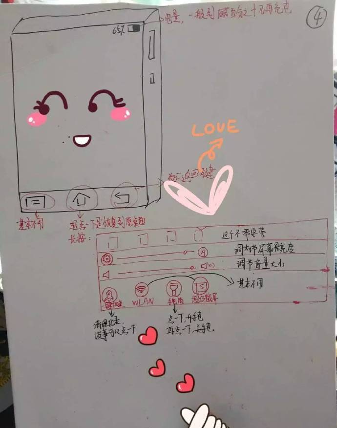 信陽某師范高校女生,為了讓外公學(xué)會使用智能手機,自制了一套手機說明書,從按鍵、狀態(tài)欄、功能等方面做出了詳細的解釋。