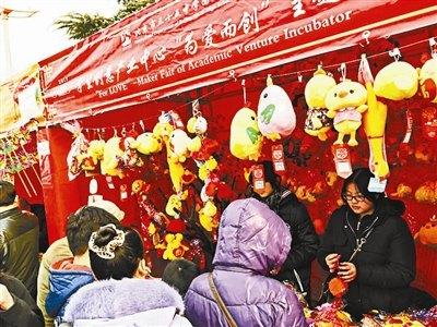 蜜蜂雞、民族雞、粉萌雞、項(xiàng)鏈雞……50余種近2000只造型各異的超萌玩偶雞在今年廠甸廟會(huì)上格外受歡迎,賣(mài)到火熱,而賣(mài)這些玩偶的廟會(huì)攤主是一群學(xué)生。原來(lái)這是35中國(guó)際部學(xué)生的公益集市“搬”進(jìn)了廠甸廟會(huì),學(xué)生們?cè)诒本﹤鹘y(tǒng)廟會(huì)上玩創(chuàng)意、做公益。