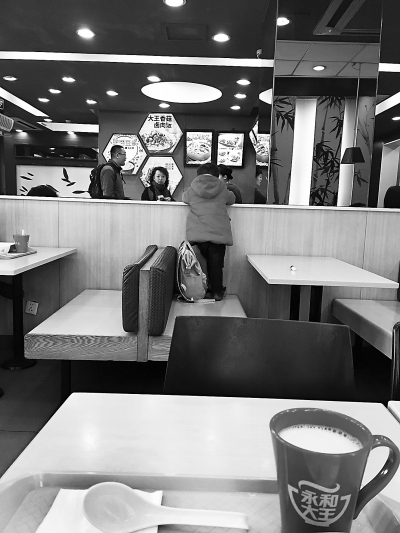 近日,在軍博一處快餐店里,記者就看到了這樣的一幕,一位帶著孩子吃飯的媽媽先將孩子放在座位上,然后跑到餐廳的點(diǎn)餐臺點(diǎn)餐。