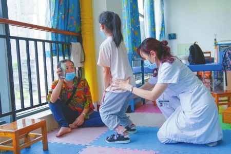在愛心基金的幫助下,小春梅獲得了到成都求醫(yī)的機(jī)會?;叵肫鸢肽昵俺跻娦〈好返那榫?,成都市中西醫(yī)結(jié)合醫(yī)院兒童康復(fù)中心醫(yī)生孔勉記憶猶新:媽媽用布襁褓背著小春梅,小姨陪在一旁,一家人眼里飽含小心翼翼的希望,又藏不住多次失望后的疑慮。