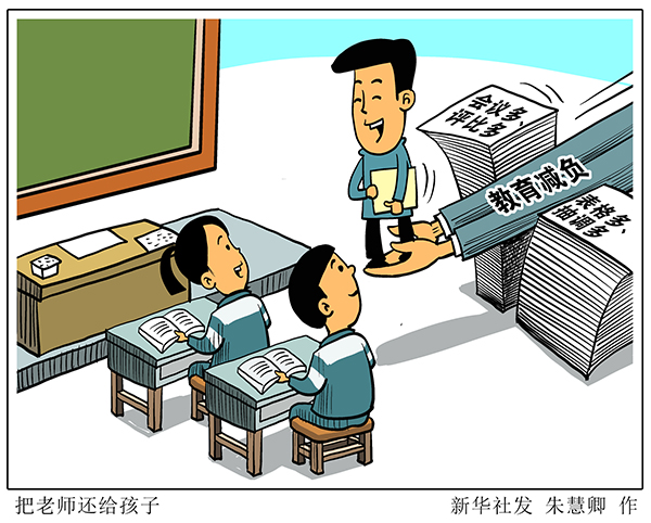 讓教師潛心教書、靜心育人,把更多時間和精力花在孩子們身上、投入到提升教學能力中,把時間還給老師,把老師還給孩子——這是教師和家長的心聲,也是全社會的呼聲。(新華社記者胡浩)