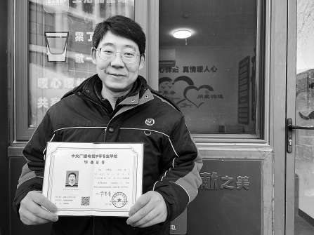 聽說學(xué)員通過考試后可以獲得國家承認(rèn)的成人中專畢業(yè)證書,學(xué)習(xí)費(fèi)用全部由街道補(bǔ)貼,蔣風(fēng)登立刻動了心。在工作人員的幫助下,他報名學(xué)習(xí)計算機(jī)應(yīng)用專業(yè),開始了半工半讀的生活。晚上下班回到家,他一遍遍地刷著網(wǎng)課;白天,他利用送快遞的間隙鞏固知識點(diǎn)。經(jīng)過一年的學(xué)習(xí),2024年3月,他順利拿到了畢業(yè)證。