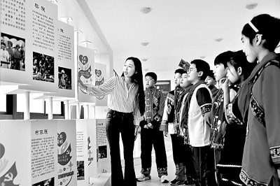 江蘇省如皋經(jīng)濟(jì)技術(shù)開發(fā)區(qū)第三實驗小學(xué)“紅石榴家園”,統(tǒng)戰(zhàn)部門工作人員向?qū)W生介紹各民族文化習(xí)俗。吳樹建攝/光明圖片