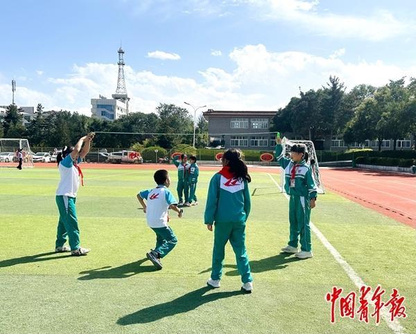 9月8日下午,記者來到固原市原州區(qū)第十一小學(xué)(以下簡稱“原州十一小”)。課間15分鐘,教學(xué)樓前的空地上,學(xué)生們跳繩、打沙包、跳方格,歡笑聲此起彼伏;30分鐘大課間時(shí)段,在學(xué)校老師陪伴下,56個(gè)班級2976名學(xué)生參加“迷你軍訓(xùn)”、武術(shù)、球類運(yùn)動、冰壺訓(xùn)練、自由運(yùn)動等,響亮的口號聲在操場回蕩;體育課上,孩子們以班級為單位,踢足球、打羽毛球、打籃球,一張張笑臉上洋溢著蓬勃朝氣。