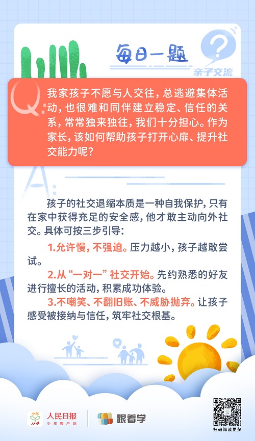 每日一題丨孩子孤僻逃避社交,家長(zhǎng)該如何引導(dǎo)?