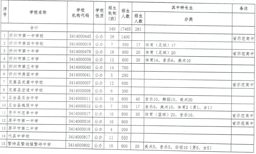 附件:1.忻州市2020年普通高中學(xué)校分校招生計(jì)劃