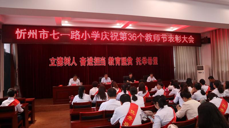 金風(fēng)送爽,涼霜驚秋。伴隨著時光款款的腳步,相攜著歲月累累的果實(shí),為傳承尊師重教的文明火種,增強(qiáng)教師的光榮感、責(zé)任感、使命感,培養(yǎng)學(xué)生尊師重教的良好品德,在第36個教師節(jié)即將來臨之際,9月9日下午,忻州市七一路小學(xué)舉行了“立德樹人奮進(jìn)擔(dān)當(dāng),教育脫貧托舉希望”第36個教師節(jié)表彰活動,會議由郭彥君副校長主持,全體教職工參加了表彰大會。