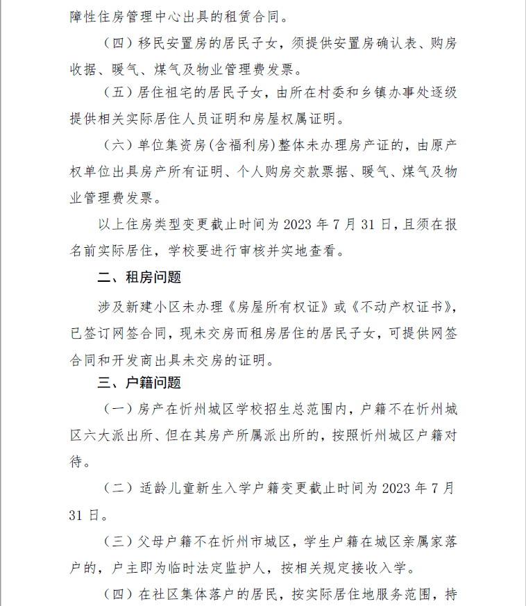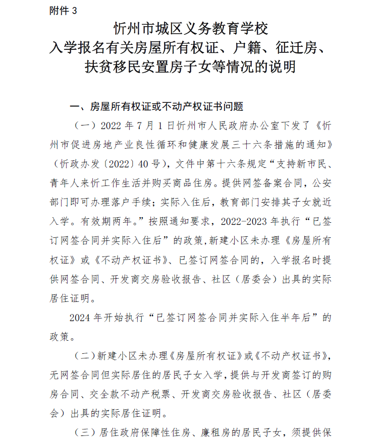 附:忻州市城區(qū)義務教育學校入學報名有關房屋所有權證、戶籍、征遷房、扶貧移民安置房子女等情況的說明