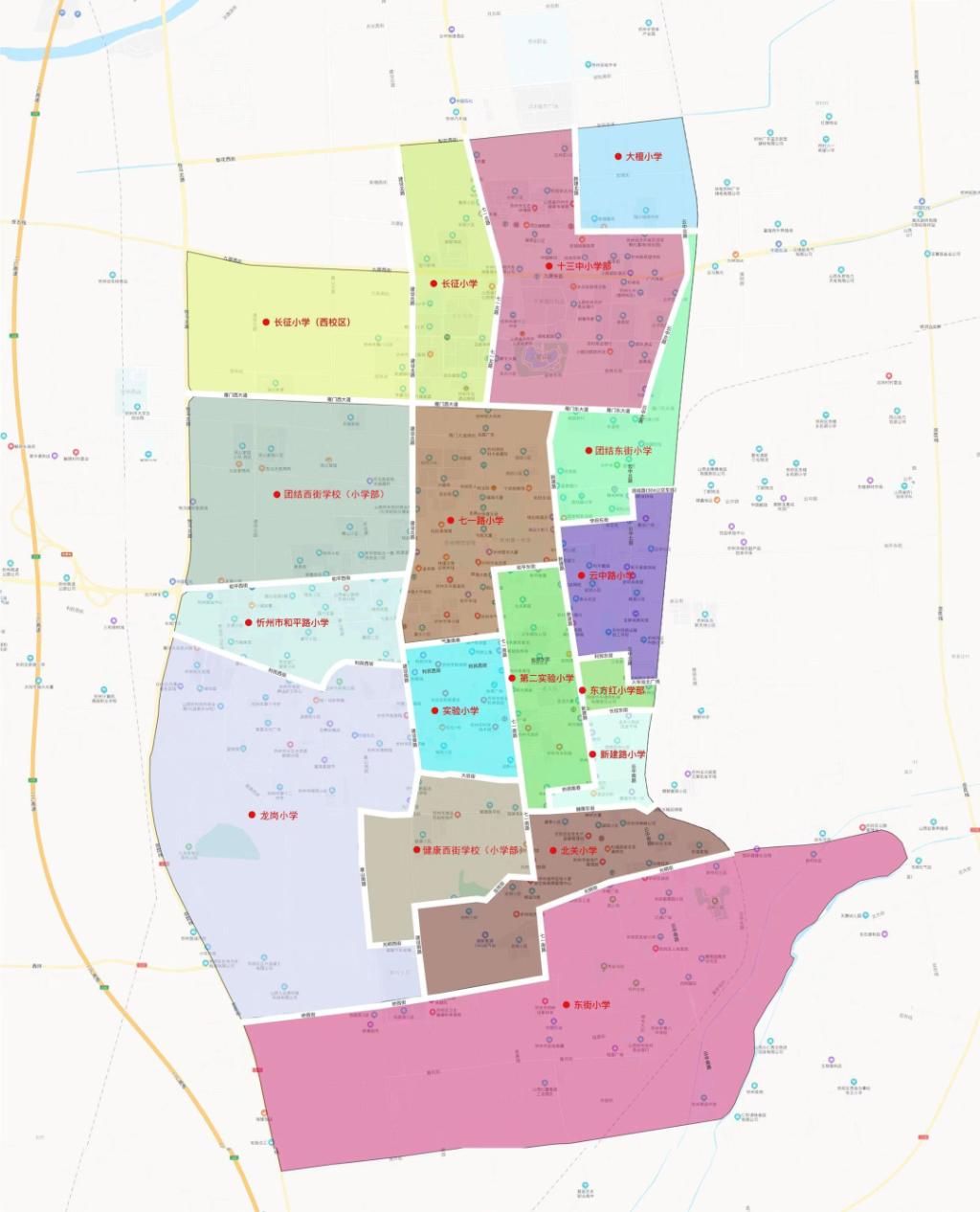 忻州市城區(qū)小學學校服務范圍圖