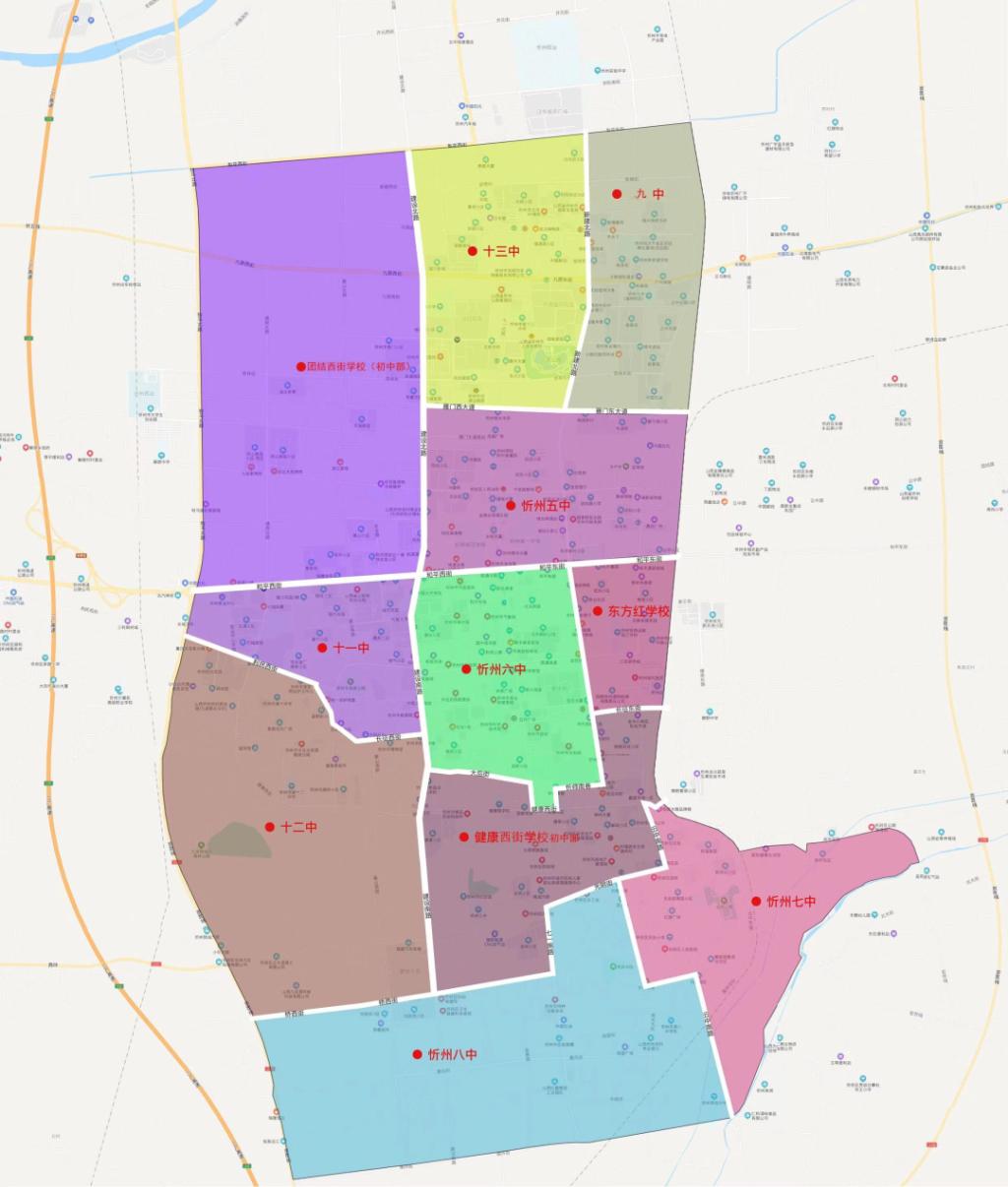 忻州市城區(qū)初中學校服務范圍圖