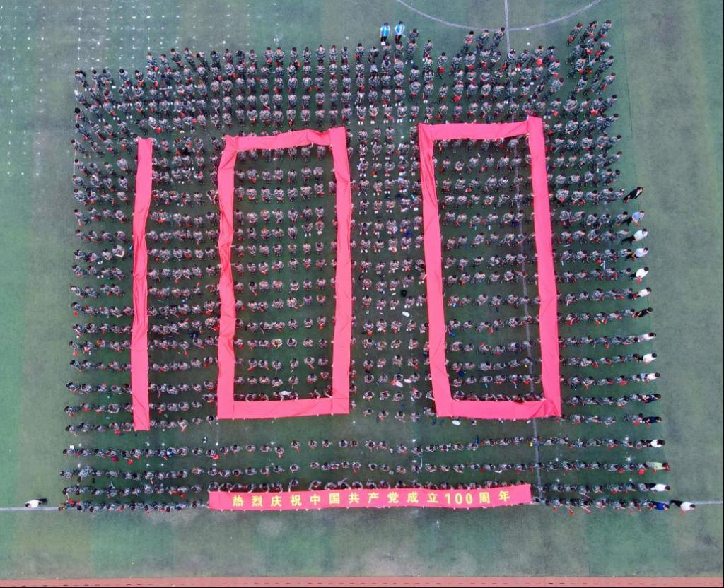 操場中央,由1000名2020級(jí)學(xué)生組成方隊(duì),呈現(xiàn)“100”字型,向黨致敬?;顒?dòng)全程莊嚴(yán)肅穆,又不失青春的朝氣蓬勃和奮進(jìn)的斗志昂揚(yáng),顯現(xiàn)出師生對(duì)中國共產(chǎn)黨百年華誕的崇敬與祝福。