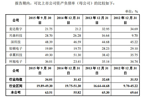 招股書(shū)顯示,2015年9月末,易德龍資產(chǎn)負(fù)債率較2014年上升近8個(gè)百分點(diǎn)至63.51%,比招股書(shū)所列同行業(yè)上市公司平均資產(chǎn)負(fù)債率高出近30個(gè)百分點(diǎn)。其中的主要負(fù)債是流動(dòng)負(fù)債,截至2015年9月末,流動(dòng)負(fù)債在負(fù)債中的占比高達(dá)95%,而同行業(yè)已上市公司平均占比為80.41%。