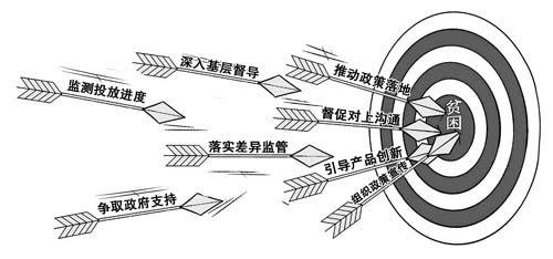 在召開(kāi)金融扶貧工作匯報(bào)會(huì)、促進(jìn)會(huì)督促推動(dòng)的基礎(chǔ)上,分局領(lǐng)導(dǎo)經(jīng)常深入相關(guān)銀行業(yè)機(jī)構(gòu)調(diào)研指導(dǎo)、現(xiàn)場(chǎng)督導(dǎo),督促其全面落實(shí)扶貧小額信貸按鄉(xiāng)鎮(zhèn)包干責(zé)任制,摸清包干鄉(xiāng)鎮(zhèn)建檔立卡貧困戶(hù)貸款需求,做到應(yīng)貸盡貸。督促機(jī)構(gòu)認(rèn)真落實(shí)“五位一體”扶貧工作要求,確保相關(guān)政策落實(shí)兌現(xiàn)。根據(jù)自身職責(zé)定位和業(yè)務(wù)特點(diǎn),共同研究扶貧模式,研討扶貧產(chǎn)品,開(kāi)展特色扶貧業(yè)務(wù)。