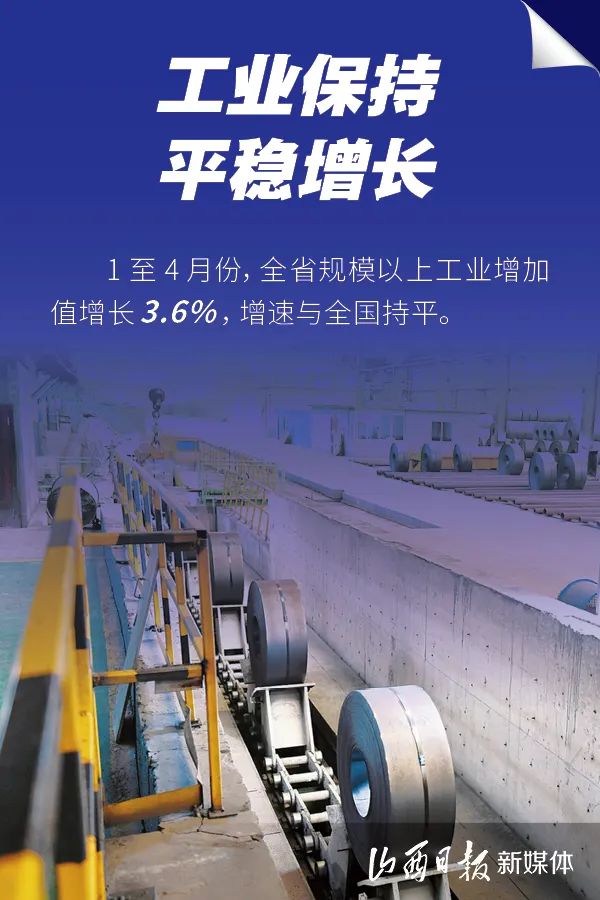 5月19日,山西省統(tǒng)計(jì)局公布1至4月份,全省經(jīng)濟(jì)運(yùn)行情況:1至4月份,全省工業(yè)生產(chǎn)平穩(wěn)增長(zhǎng),消費(fèi)市場(chǎng)加速回暖,就業(yè)物價(jià)總體穩(wěn)定,經(jīng)濟(jì)運(yùn)行延續(xù)恢復(fù)向好態(tài)勢(shì)。一組海報(bào),了解1至4月山西經(jīng)濟(jì)數(shù)據(jù)。