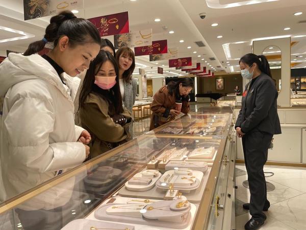 11日,消費(fèi)者在上海一家金店選購(gòu)黃金制品。新華社記者程思琪 攝
