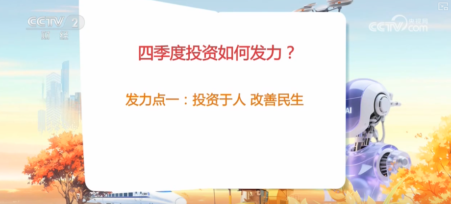 國家信息中心經(jīng)濟(jì)預(yù)測部產(chǎn)業(yè)經(jīng)濟(jì)研究室主任魏琪嘉介紹,四季度整個投資的重點(diǎn)領(lǐng)域,很多集中于民生項(xiàng)目建設(shè)方面,包括城市更新改造,地下管廊改造,包括停車場建設(shè)以及高標(biāo)準(zhǔn)農(nóng)田等,這些事關(guān)民生的一些重點(diǎn)的領(lǐng)域,實(shí)現(xiàn)這種投資于物與投資于人的這種高效協(xié)同,更多的投資于人。