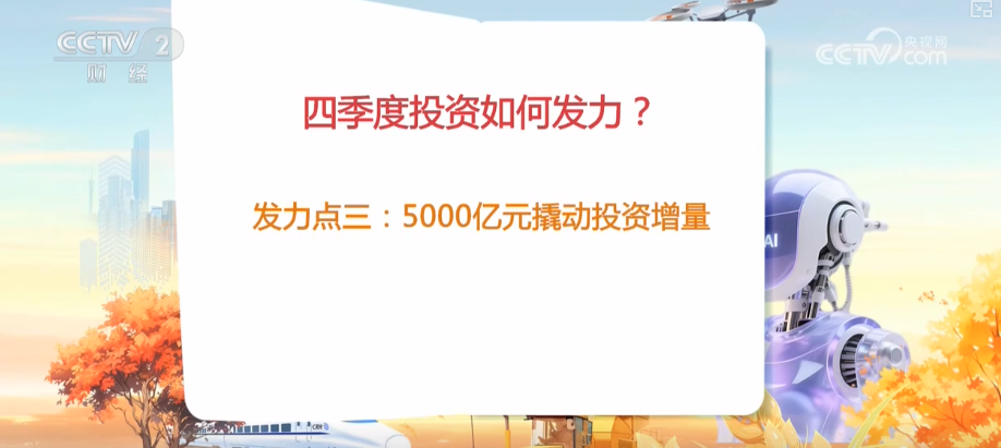 央視網(wǎng)消息:投資是拉動經(jīng)濟(jì)增長的“三駕馬車”之一。四季度,國內(nèi)投資發(fā)力的重點(diǎn)在哪里,專家進(jìn)行了權(quán)威解讀。