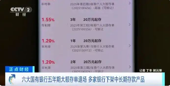 記者查詢工、農(nóng)、中、建、交、郵儲(chǔ)六大國(guó)有銀行的App發(fā)現(xiàn),五年期大額存單已不顯示,三年期相關(guān)產(chǎn)品的利率普遍降到1.5%至1.75%。此外,部分中小銀行也開始密集調(diào)整存款業(yè)務(wù)。梅州客商銀行近期公告已下架五年期定期存款產(chǎn)品,億聯(lián)銀行等機(jī)構(gòu)App也已不顯示五年期大額存單。