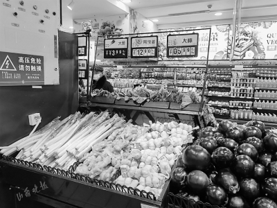 2日8時(shí)許,山西晚報(bào)記者在北京華聯(lián)超市太航店看到,各類新鮮蔬菜應(yīng)有盡有,促銷員不停地喊著“白菜、蘿卜、土豆六毛九一斤,紅薯九毛一斤,杏鮑菇兩塊九毛九一斤!”不少市民圍在這些特價(jià)蔬菜前仔細(xì)挑選,而在蔥姜蒜區(qū)域,卻幾乎沒有市民選購(gòu)。