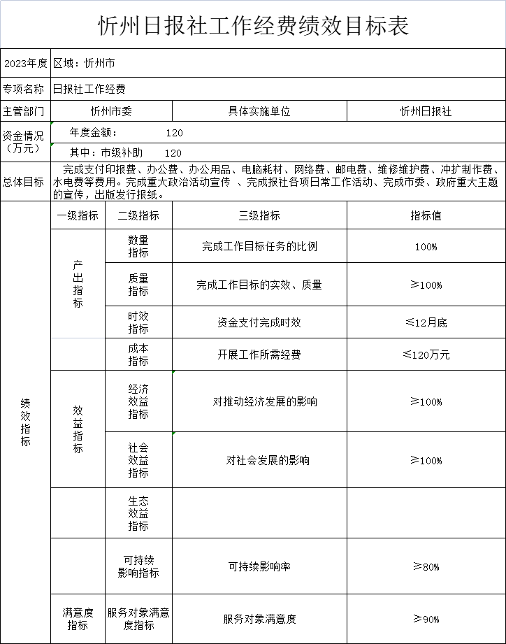 2023年忻州日?qǐng)?bào)社實(shí)行績(jī)效目標(biāo)管理的項(xiàng)目4個(gè),涉及一般公共預(yù)算當(dāng)年撥款178.4萬(wàn)元。