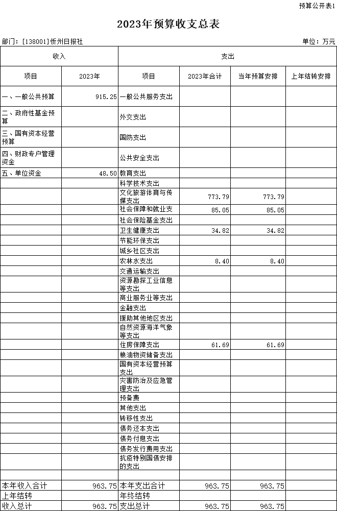 一、2023年預(yù)算收支總表