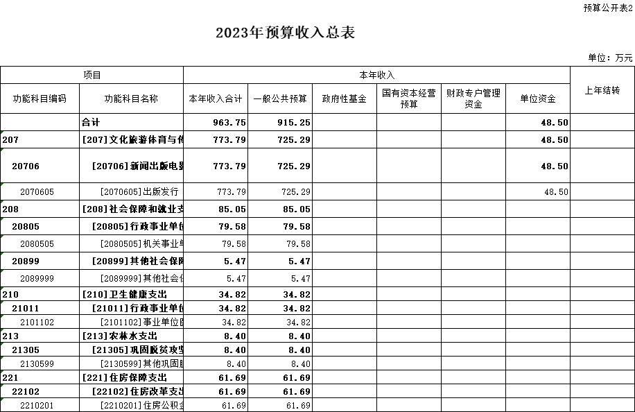 二、2023年預(yù)算收入總表