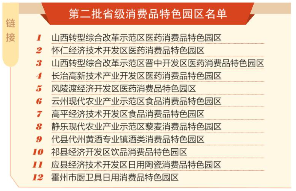 2025年12月30日,省商務(wù)廳、省工業(yè)和信息化廳聯(lián)合發(fā)布通知,公布第二批省級(jí)消費(fèi)品特色園區(qū)名單。經(jīng)過(guò)組織申報(bào)、專(zhuān)家評(píng)審、分析研判及公示等多輪嚴(yán)格程序,山西轉(zhuǎn)型綜合改革示范區(qū)醫(yī)藥消費(fèi)品特色園區(qū)、懷仁經(jīng)濟(jì)技術(shù)開(kāi)發(fā)區(qū)醫(yī)藥消費(fèi)品特色園區(qū)等12個(gè)定位清晰、特色鮮明的園區(qū)入選,將進(jìn)一步推動(dòng)全省消費(fèi)品工業(yè)集聚化、高質(zhì)量發(fā)展。