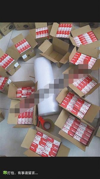 面膜代理商朋友圈中曬出的快遞單及待發(fā)貨物,營(yíng)造出微商很忙很賺錢(qián)的樣子。