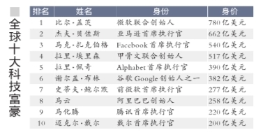 京華時報訊(記者胡笑紅)福布斯10日發(fā)布了第二屆科技行業(yè)百富榜顯示,全球排名前100的科技富豪合并財富達(dá)到8920億美元,較去年增長6%。中國的馬云、馬化騰躋身榜單前十。