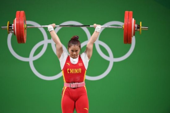 (圖為里約奧運(yùn)會(huì)舉重女子63公斤級(jí)比賽中,中國選手鄧薇兩破世界紀(jì)錄并奪冠。新華社圖片)