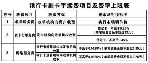 其中,發(fā)卡機(jī)構(gòu)收取的發(fā)卡行服務(wù)費(fèi)將改為不區(qū)分商戶類別,實(shí)行政府指導(dǎo)價(jià)、上限管理,并對(duì)借記卡、貸記卡差別計(jì)費(fèi)。發(fā)卡行服務(wù)費(fèi)費(fèi)率水平降低為借記卡交易不超過(guò)交易金額的0.35%,貸記卡交易不超過(guò)0.45%。借記卡交易單筆收費(fèi)金額不超過(guò)13元,貸記卡交易不實(shí)行單筆收費(fèi)封頂控制。