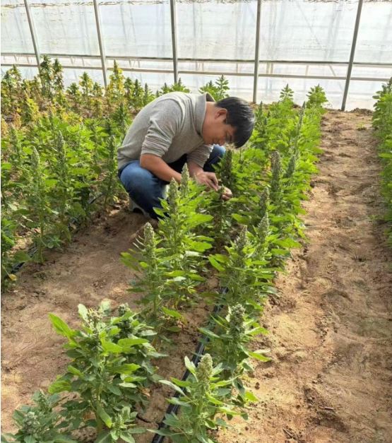 除了常規(guī)水肥管理與病蟲害防控,溫室更重要的日常工作是科研?!坝N不是看一眼就能下結論,必須把每一株、每一代的變化都用數(shù)據(jù)說清楚。在藜麥生長的關鍵時期,記錄株型、穗型、抗性表現(xiàn)等數(shù)據(jù)非常重要,還要采集基因樣本用于測定與分析,為后續(xù)選擇提供依據(jù)?!闭τ谌斯とバ垭s交工作的技術總監(jiān)賀培洋說。