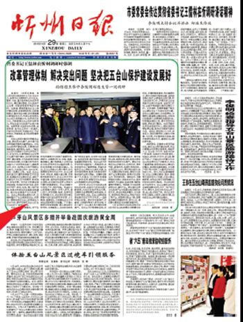2015年4月2日,世界文化景觀五臺(tái)山作為5A景區(qū)被國家旅游局警告,9月14日又被央視“焦點(diǎn)訪談”曝光。9月21日至23日,省委書記王儒林深入五臺(tái)山就傳承弘揚(yáng)優(yōu)秀傳統(tǒng)文化、景區(qū)建設(shè)管理、文化旅游產(chǎn)業(yè)發(fā)展、宗教政策落實(shí)等進(jìn)行調(diào)研。他強(qiáng)調(diào),要高度重視五臺(tái)山保護(hù)建設(shè)發(fā)展,改革體制機(jī)制,創(chuàng)新管理理念,解決突出問題,切實(shí)提高景區(qū)管理服務(wù)水平,傳承弘揚(yáng)發(fā)展五臺(tái)山悠久的佛教文化、優(yōu)秀的歷史文化,帶動(dòng)全省文化旅游產(chǎn)業(yè)做大做強(qiáng)。