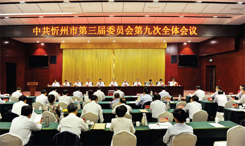 本報(bào)訊(記者 任逢春)9月19日下午,在莊嚴(yán)的國歌聲中,中國共產(chǎn)黨忻州市第三屆委員會(huì)第九次全體會(huì)議在忻州召開,討論表決中國共產(chǎn)黨忻州市第四次代表大會(huì)有關(guān)事項(xiàng)。市委書記李俊明主持會(huì)議并作重要講話。市委副書記、市長鄭連生,市委副書記張曉峰,市委常委、紀(jì)委書記王珍,市委常委、政法委書記武德,市委常委、忻州軍分區(qū)政委阮全進(jìn),市委常委梁潔,市委常委、宣傳部長陳義青,市委常委、組織部長王建廷,市委常委、五臺(tái)山風(fēng)景名勝區(qū)管委會(huì)主任范波濤,市委常委、常務(wù)副市長趙志堅(jiān)在主席臺(tái)就座。市委委員32人、候補(bǔ)市委委員1人出席會(huì)議。