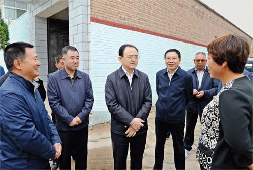 圖為市委書(shū)記李俊明在忻府區(qū)小檀村調(diào)研改廁情況。(本報(bào)記者 劉紀(jì)森 攝)