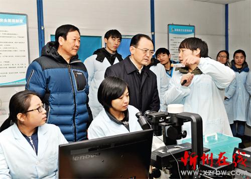 圖為市委書記李俊明在開發(fā)區(qū)新入駐正在建設中的山西培森生物制品公司調研。