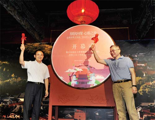 本報(bào)訊(記者 任逢春)7月22日,經(jīng)過扎實(shí)細(xì)致的準(zhǔn)備,由文化部恭王府博物館和忻州市委、市政府共同主辦的“欣欣向榮,心靈之舟”山西忻州文化遺產(chǎn)精品展示月系列活動(dòng)正式亮相首都。同日,文化部恭王府博物館(駐忻州靜樂)傳統(tǒng)工藝工作站正式成立,文化部副部長(zhǎng)項(xiàng)兆倫和市委書記李俊明一同擊鼓啟幕,市委常委、常務(wù)副市長(zhǎng)趙志堅(jiān)主持開幕式。文化部非遺司司長(zhǎng)陳通,文化部恭王府博物館館長(zhǎng)孫旭光,省委宣傳部常務(wù)副部長(zhǎng)李福明,省文化廳副廳長(zhǎng)趙銀邦,市委常委、宣傳部長(zhǎng)陳義青,市委常委、秘書長(zhǎng)崔建新,市人大常委會(huì)副主任、靜樂縣委書記李德新,副市長(zhǎng)王月娥,以及文化部恭王府博物館、文化部離退休人員服務(wù)中心、省委宣傳部、省文化廳和我市的有關(guān)領(lǐng)導(dǎo)同志出席開幕活動(dòng)。中央、省、市媒體記者和各地游人一同見證開幕。