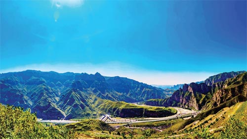 圖為生態(tài)環(huán)境得到有效治理和保護(hù),五保高速、五盂高速交匯而過的五臺(tái)天和煤業(yè)露天采礦復(fù)墾治理區(qū)。(賈樹林 攝)
