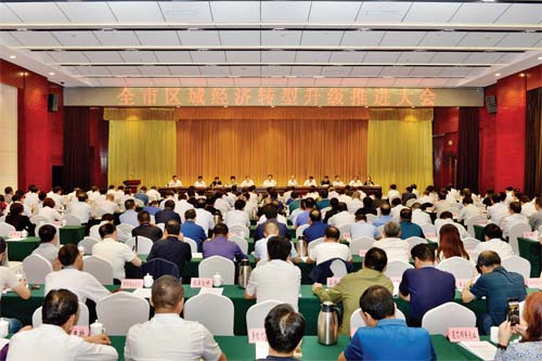 會(huì)議指出,要在六方面做好轉(zhuǎn)型升級(jí)工作。第一,在規(guī)劃與指導(dǎo)上,要把握高度,突出精度。必須清醒地把握轉(zhuǎn)型升級(jí)的大背景、大趨勢(shì),全市上下要強(qiáng)化不轉(zhuǎn)沒(méi)出路、慢轉(zhuǎn)就落后的理念,必須準(zhǔn)確把握轉(zhuǎn)型升級(jí)的新標(biāo)準(zhǔn)、新要求,始終堅(jiān)持轉(zhuǎn)型為綱、產(chǎn)業(yè)為王、創(chuàng)新為上、改革為要,要做大優(yōu)勢(shì),補(bǔ)齊短板。必須加強(qiáng)和改善黨對(duì)經(jīng)濟(jì)工作的領(lǐng)導(dǎo),將轉(zhuǎn)型升級(jí)內(nèi)容納入市委常委會(huì)1+3季度經(jīng)濟(jì)運(yùn)行分析制度,做到底清數(shù)明、精準(zhǔn)指導(dǎo)。第二,在產(chǎn)業(yè)和項(xiàng)目上,要突出轉(zhuǎn)型、推動(dòng)轉(zhuǎn)型。核心要在六大主戰(zhàn)場(chǎng)主陣地,突出新動(dòng)能培育、新技術(shù)應(yīng)用、新產(chǎn)品開(kāi)發(fā)。要緊盯產(chǎn)業(yè)項(xiàng)目不放,緊盯相關(guān)指標(biāo)不放,緊盯落后的縣(市、區(qū))和部門(mén)不放,大力推動(dòng)支柱產(chǎn)業(yè)轉(zhuǎn)型升級(jí),大力推動(dòng)開(kāi)發(fā)區(qū)轉(zhuǎn)型升級(jí),大力推動(dòng)民營(yíng)經(jīng)濟(jì)轉(zhuǎn)型升級(jí)。要把功夫下在招商引資、招財(cái)引智和項(xiàng)目落地上。要落實(shí)責(zé)任制,將縣細(xì)化到干部和崗位。第三,在協(xié)調(diào)與環(huán)境上,要深化改革、擴(kuò)大開(kāi)放。要堅(jiān)持以改革促轉(zhuǎn)型,堅(jiān)持以開(kāi)放促轉(zhuǎn)型,堅(jiān)持以環(huán)保倒逼轉(zhuǎn)型,堅(jiān)持以環(huán)境保障轉(zhuǎn)型。第四,在市場(chǎng)與人才上,要激活主體,突出創(chuàng)新。要以更大力度推進(jìn)創(chuàng)新發(fā)展,補(bǔ)齊我市創(chuàng)新驅(qū)動(dòng)短板,要發(fā)揮市場(chǎng)主導(dǎo)作用,強(qiáng)化企業(yè)主體地位和科技人才的主力作用,在新一輪的人才大戰(zhàn)中有所作為,引導(dǎo)創(chuàng)新要素向企業(yè)集聚。要全面深化企業(yè)改革,扎實(shí)推進(jìn)國(guó)企改革和轉(zhuǎn)型升級(jí)。要為企業(yè)家放心干、放膽干、放手干撐腰做主,要發(fā)揮金融在區(qū)域經(jīng)濟(jì)轉(zhuǎn)型中的發(fā)動(dòng)機(jī)、產(chǎn)業(yè)升級(jí)中的推進(jìn)器作用,切實(shí)激發(fā)活力。第五,在責(zé)任與擔(dān)當(dāng)上,要強(qiáng)化主責(zé),聚焦主業(yè)。要認(rèn)真貫徹落實(shí)中辦印發(fā)的《關(guān)于進(jìn)一步激勵(lì)廣大干部新時(shí)代新?lián)?dāng)新作為的意見(jiàn)》,全面落實(shí)習(xí)近平總書(shū)記關(guān)于“三個(gè)區(qū)分開(kāi)來(lái)”的重要要求,旗幟鮮明為敢于擔(dān)當(dāng)?shù)母刹繐窝膭拧J锌h黨委、政府班子成員對(duì)轉(zhuǎn)型升級(jí)要做到指標(biāo)到人、臺(tái)賬管理、動(dòng)態(tài)調(diào)控、年底交賬,并作為領(lǐng)導(dǎo)班子和領(lǐng)導(dǎo)干部年度民主生活會(huì)對(duì)照檢查的重要內(nèi)容,作為干部選拔任用的重要依據(jù)。黨政部門(mén)的每一位班子成員,都要聯(lián)系一個(gè)產(chǎn)業(yè)園區(qū),抓好一個(gè)以上轉(zhuǎn)型升級(jí)示范項(xiàng)目。相關(guān)部門(mén)都要對(duì)標(biāo)履職,量化到人,共同推動(dòng)今年轉(zhuǎn)型升級(jí)考核指標(biāo)應(yīng)統(tǒng)盡統(tǒng)、能升盡升、能增盡增、全力破零。第六,在考核與問(wèn)責(zé)上,要分類實(shí)施,從嚴(yán)要求。在今年區(qū)域經(jīng)濟(jì)轉(zhuǎn)型升級(jí)考核中排后三位的要公開(kāi)作出檢查。