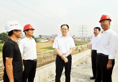 在忻州西站以北的大西客專與忻五公路交叉地段,京太鐵路(雄忻段)引入大西客專施工現(xiàn)場,李俊明詳細(xì)了解大西客專既有線路、雄忻高鐵接軌的近期工程和預(yù)留遠(yuǎn)期規(guī)劃,實地察看左右進(jìn)出線的路基打樁、擋墻施工、路基幫寬等正在進(jìn)行的工程,聽取各主要節(jié)點工期計劃安排,詢問工程實施中的困難問題。