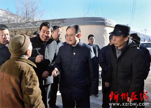 圖為省人大常委會(huì)副主任、市委書(shū)記李俊明在繁峙縣巖頭鄉(xiāng)茶鋪村向村民了解脫貧情況。本報(bào)記者劉紀(jì)森攝