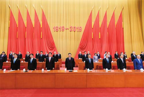 4月30日,紀(jì)念五四運(yùn)動(dòng)100周年大會(huì)在北京人民大會(huì)堂隆重舉行。習(xí)近平、李克強(qiáng)、栗戰(zhàn)書、汪洋、王滬寧、趙樂際、韓正、王岐山等出席大會(huì)。新華社記者李學(xué)仁攝