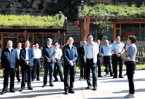 省人大常委會(huì)副主任、市委書(shū)記李俊明和參會(huì)人員在寧武縣涔山鄉(xiāng)大石洞村觀摩整村提升情況。本報(bào)記者 劉紀(jì)森 攝